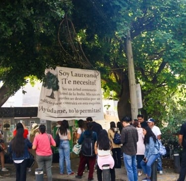 En la colonia Tlacoquemécatl del Valle, en la esquina de Miguel Laurent número 48 y Fresas, un laurel de más de 100 años y 30 metros de altura, ha movilizado en las últimas semanas a cientos de personas en la alcaldía Benito Juárez, quienes exigen su protección y la cancelación definitiva de su derribo, previsto por la construcción de un proyecto inmobiliario.